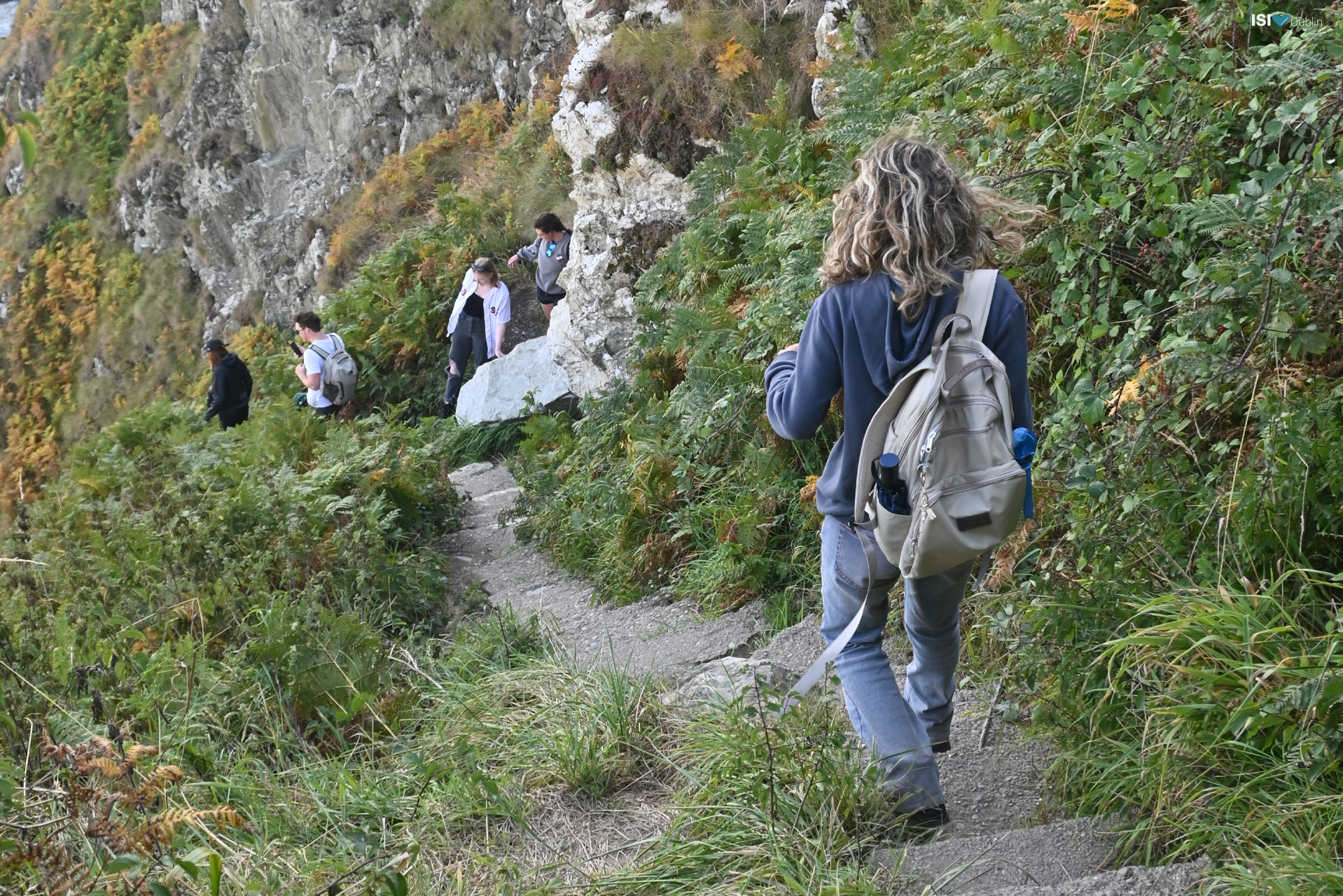 Vous suivez des petits sentiers tout au long du parcours qui va jusqu'au bord de la falaise. Si vous le souhaitez, vous pouvez préparer un itinéraire. ici ou simplement marcher le long de la falaise et profiter de la vue incroyable sur les vagues qui se brisent contre les rochers.